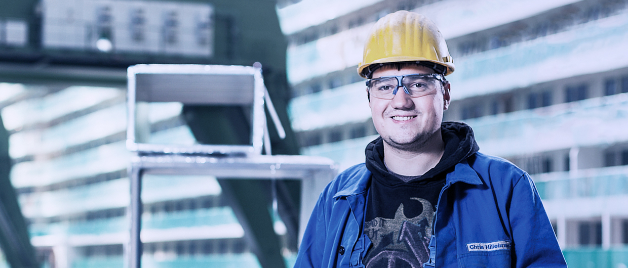 Unsere Auszubildenden zum Konstruktionsmechaniker Ausrüstung (m/w/d) sind echte Multitalente, denn die Tätigkeiten, die sie sich aneignen müssen, sind vielfältig. Sie lernen, Schiffsausrüstungsbauteile einzubauen und hydraulische Anlagen zu installieren. Wir bringen ihnen die Grundlagen der Metallverarbeitung bei – Bohren, Gewindeschneiden, Kalt- und Warmumformen und das Abwickeln von geometrischen Körpern. Zudem kümmern sie sich um das Aufstellen, Ausrichten und Verschweißen von Bauteilen und um den Einbau von Be- und Entlüftungskanälen.