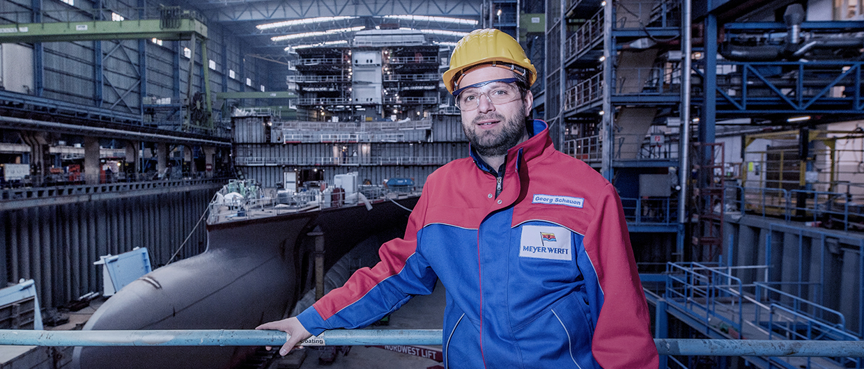 Im Projektmanagement beschäftigt die MEYER WERFT Menschen verschiedener Berufsgruppen, die meisten von ihnen haben eine technische Ausbildung oder ein technisches Studium absolviert.