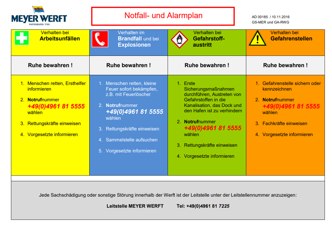 Bei Fragen wenden Sie sich bitte an die Arbeitssicherheit der MEYER WERFT.