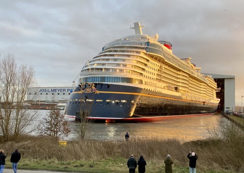 Das neueste Mitglied der Flotte von Disney Cruise Line, die Disney Wish, ist am heutigen Freitag aus dem Baudock II in den Werfthafen verholt worden. Es ist nach der Disney Fantasy (2012) und der Disney Dream (2010) das dritte Schiff, das die MEYER WERFT für den weltgrößten Unterhaltungskonzern baut.