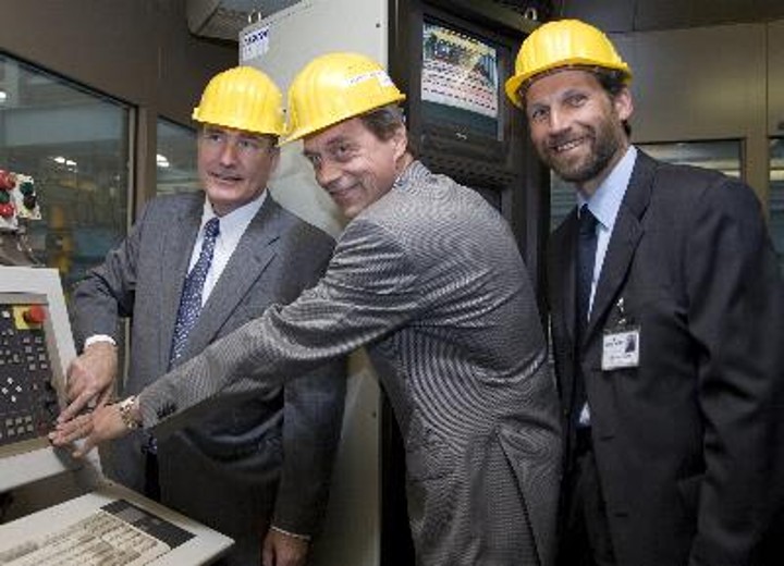 Papenburg, 6. September 2007- Start frei: Die erste Stahlplatte für das zweite von vier Schiffen, die Celebrity Equinox, für die Reederei Celebrity Cruises (Miami) ging jetzt auf der MEYER WERFT in die Fertigung. Richard Fain, Vorstandsvorsitzender von Royal Caribbean Cruises Ltd., drückte den Startknopf der vollautomatisierten Brennmaschine.