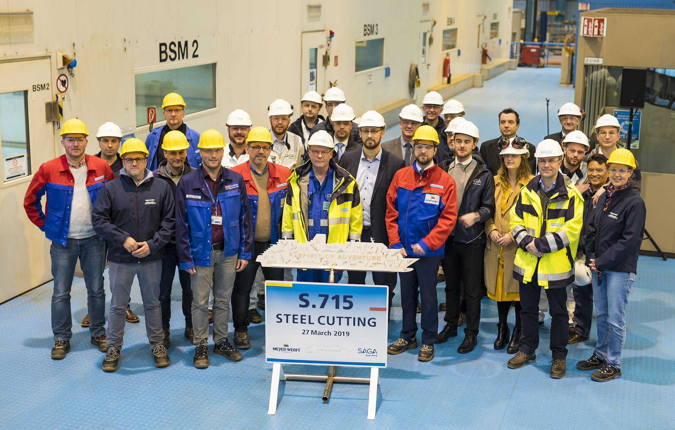 Mit dem Stahlschnitt begann am Mittwoch der Bau der Spirit of Adventure auf der MEYER WERFT in Papenburg. Das Schiff ist der zweite Neubau für die britische Reederei Saga Cruises und wird im Sommer 2020 abgeliefert.