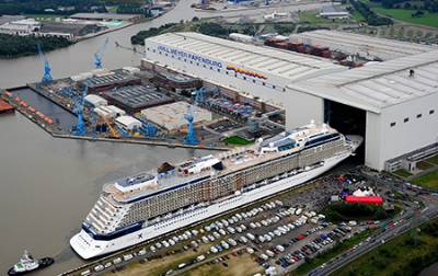 Papenburg, 04.08.2008 - Das neue Schiff ist um ca. 08.00 Uhr langsam aus der Halle gezogen worden. Die Celebrity Solstice wird nun ins Hafenbecken verholt, wo unterschiedliche Tests durchgeführt werden. Gegen 14.00 Uhr wird das Schiff dann am Ausrüstungskai der Werft festmachen. Am Ausrüstungskai der Werft werden dann die restlichen Arbeiten im und am Schiff zu Ende geführt. Beispielsweise werden die beiden Schornsteine des Schiffes am Montag im Laufe des Tages montiert.