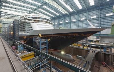 Papenburg, 5. Januar 2012 - Das neue Kreuzfahrtschiff für die amerikanische Reederei Disney Cruise Line (Orlando), die Disney Fantasy, verlässt am Sonntag, den 8. Januar 2012 das überdachte Baudock II der MEYER WERFT.