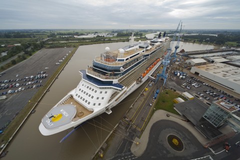 Papenburg, 12. September 2012 – Die Celebrity Reflection wird voraussichtlich in der Nacht von Samstag auf Sonntag (16.09.2012), Papenburg verlassen und auf der Ems in Richtung Eemshaven (Niederlande) überführt. Nach einem kurzen Stopp in Emden wird das Schiff zu einer kurzen Einstellungsfahrt starten bevor es in Eemshaven (NL) ankommt.