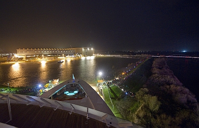 Papenburg, 12.11.2010 - Heute Nacht wird das Kreuzfahrtschiff Disney Dream von der MEYER WERFT in Papenburg nach Eemshaven in den Niederlanden überführt. Von Emshaven aus wird die Disney Dream eine Reihe von Probefahrten auf der Nordsee absolvieren. Zehntausende Zuschauer werden am Emsufer erwartet, wenn Disneys Familienkreuzfahrtschiff am Abend zur 42 Kilometer langen Überführungsfahrt auf der Ems ablegt.