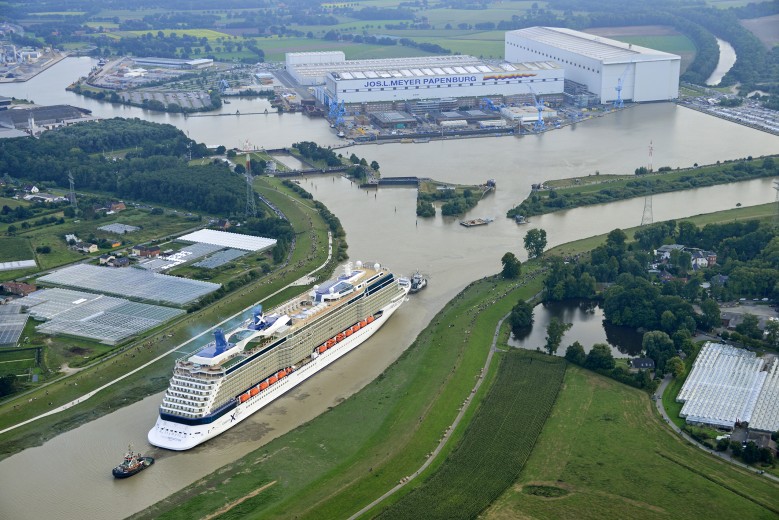 Papenburg, 17. September 2012 - Die Emsüberführung des neuen Kreuzfahrtschiffes Celebrity Cruises am 16./17. September 2012 ist problemlos verlaufen. Die Passage wurde in weniger als 12 Stunden durchgeführt. Die beantragte Ausnahmegenehmigung wurde nicht in Anspruch genommen. Ökologische Beeinträchtigungen durch die Schiffspassage waren nicht zu verzeichnen. Auch die Deichvorländer der Ems wurden nicht überflutet.