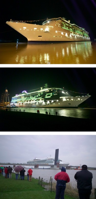 Papenburg, 05.04.2004 - Die Jewel of the Seas wurde gestern ohne Probleme von Papenburg nach Eemshaven - dem Ausgangshafen für die See-Erprobung der Meyer Werft-Schiffe - überführt.