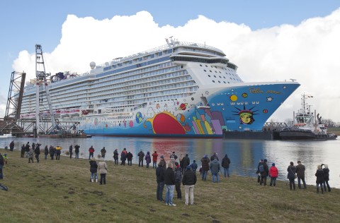 Die 39,7 Meter breite und 324 Meter lange Norwegian Breakaway über die Ems zu bringen, ist eine nautische Herausforderung. Mit Hilfe der modernen Technik, die das Überführungsteam bei der Schiffspassage nutzt, und der idealen Vorbereitung durch eine Schulung im Computersimulator, wurde das Manöver ohne jeden Schaden für das Schiff und die Natur am Donnerstagmorgen beendet. Der Wasserstand von 2,42 + NN (Pegel Gandersum) ermöglichte eine sichere Überführung des Schiffes, das einen Tiefgang von etwa 8 Metern hat.