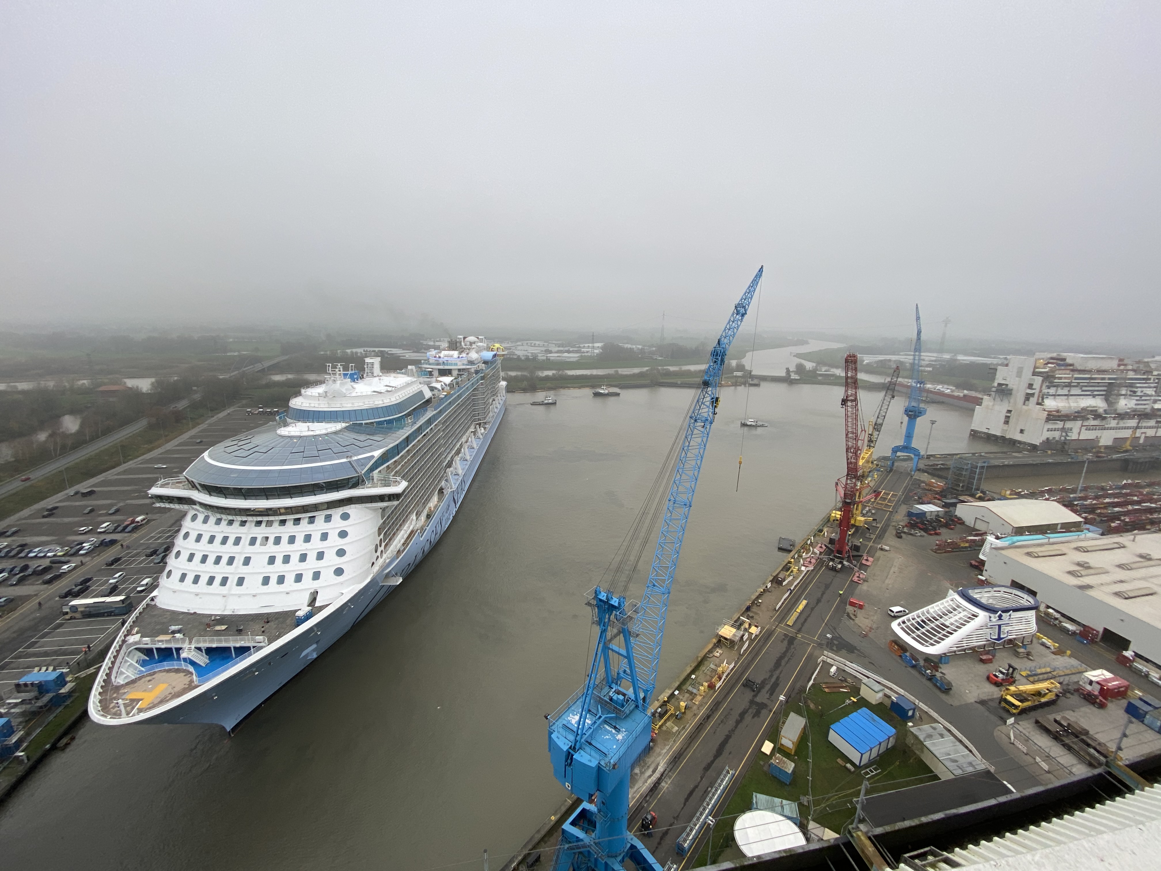 Am heutigen Samstag, den 28. November, verlässt die Odyssey of the Seas das überdachte Baudock II (Halle 6) der MEYER WERFT. Das 347,1 Meter lange Kreuzfahrtschiff für die Reederei Royal Caribbean International setzt sich am Vormittag in Bewegung.