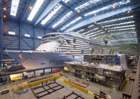 Das neue Kreuzfahrtschiff Ovation of the Seas im Baudock