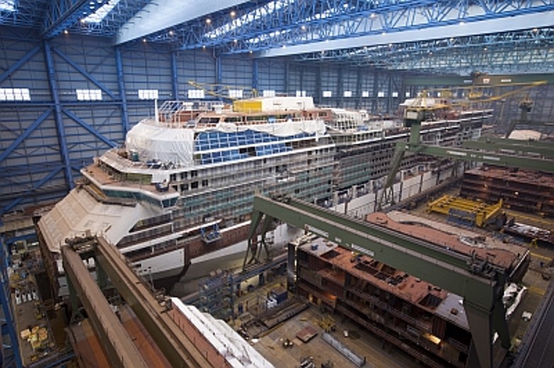 Wenn die Celebrity Silhouette am späten Nachmittag wieder in der Halle ist, wird das Wasser im Dock wieder abgepumpt und die Montage der Bugsektion kann erfolgen. Im Innenausbau laufen die Arbeiten parallel weiter. Die Ablieferung des Schiffes wird im Juli diesen Jahres erfolgen.