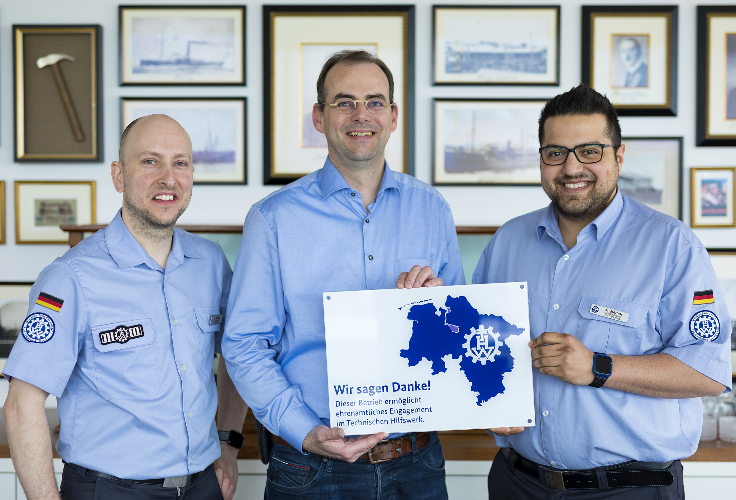 Das Schild trägt die Gravur „Wir sagen Danke. Dieser Betrieb ermöglicht ehrenamtliches Engagement im Technischen Hilfswerk“. „Denn es ist in der heutigen Zeit nicht mehr selbstverständlich, dass ein Arbeitgeber Mitarbeiter freistellt, um ihnen die Möglichkeit zu geben, bei Einsätzen zu helfen oder an Ausbildungsveranstaltungen teilzunehmen“, so Etemaj. Dem THW-Ortsverband Papenburg gehören 115 Mitglieder, davon 35 Jugendliche, an.