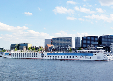 Die vier Flusskreuzfahrtschiffe verkehren auf über 15 verschiedenen Routen und können in 100 Außenkabinen bis zu 242 Gäste beherbergen.