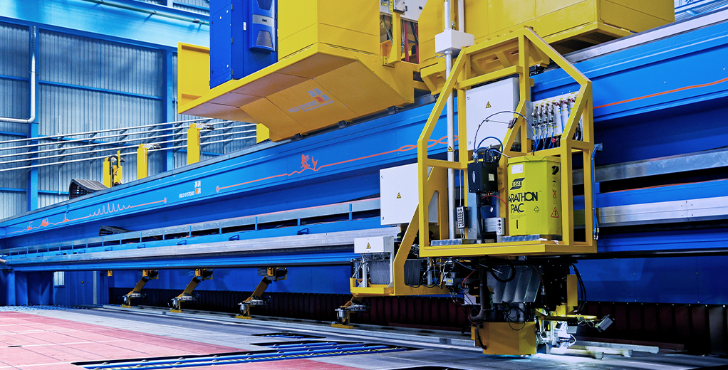 Die MEYER WERFT formt Ozeanriesen aus drei mal zehn Meter großen Stahlplatten. Spezielle Laser verschweißen im MEYER WERFT Laserzentrum die Platten vollautomatisch zu Innen- und Außenwänden des Schiffes. Die Öffnungen für Fenster, Türen und Durchlässe werden mit neuester Plasmatechnologie ausgeschnitten – alles ausschließlich von Computern gesteuert. Die Laser arbeiten mit weniger Hitze, so dass wir unseren Werkstoff schonen und sich der Stahl beim Schweißen nicht dehnt oder verformt. Deshalb können wir mit vergleichsweise dünnen Platten arbeiten. Das spart bereits beim Bau Material und Kosten und senkt später im Betrieb den Treibstoffverbrauch. Ein Kreuzfahrtschiff hat etwa 1.000 Kilometer Schweißnaht. 800 Kilometer davon übernehmen Laser, der Rest ist Handarbeit. Unser Stahlbau ist Hightech, mit seinen sieben Anlagen ist es das größte Laserzentrum Europas.