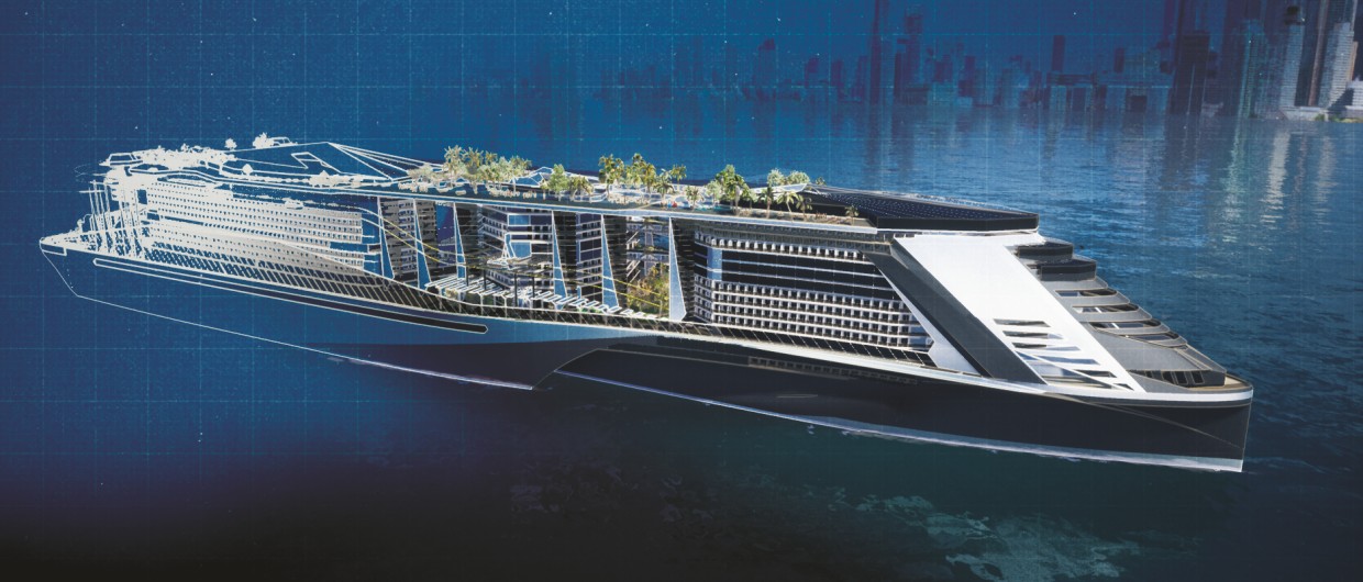 Es wurde ein Designentwurf, der sich außerhalb der gewohnten technischen Wohlfühlzone befindet und sich der Herausforderung der immer größer werdenden Schiffe stellt. Der Kern unseres Ansatzes beinhaltete, das Kreuzfahrtschiff selbst noch mehr zur Urlaubsdestination zu machen und dabei so klimaschonend wie möglich unterwegs zu sein.