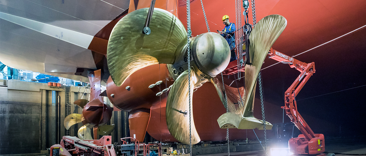Im Jahr 2018 haben wir die AIDAnova abgeliefert – den ersten Ozeanriesen, der ausschließlich mit Flüssigerdgas (LNG) fährt. Es ist das derzeit sauberste Kreuzfahrtschiff der Welt. Der Ausstoß von Feinstaub und Schwefeloxiden lässt sich mit dem emissionsarmen Treibstoff vollständig vermeiden; Stickoxide und Kohlendioxid werden deutlich reduziert. Zehn Jahre hat die MEYER WERFT zusammen mit ihren Partnern an dieser Lösung gearbeitet. Als erstes Kreuzfahrtschiff überhaupt hat die Bundesregierung die AIDAnova mit dem Umweltsiegel Blauer Engel ausgezeichnet. Die Entwicklung des LNG-Antriebs festigt unsere Position als Technologieführer im Bau von Kreuzfahrtschiffen, sie ist für uns aber vor allem ein Ansporn weiter zu forschen. Unser Ziel ist das emissionsfreie Kreuzfahrtschiff mit alternativen und regenerativen Brennstoffen. Daran arbeiten wir mit aller Leidenschaft und Mut für neue Ideen.
