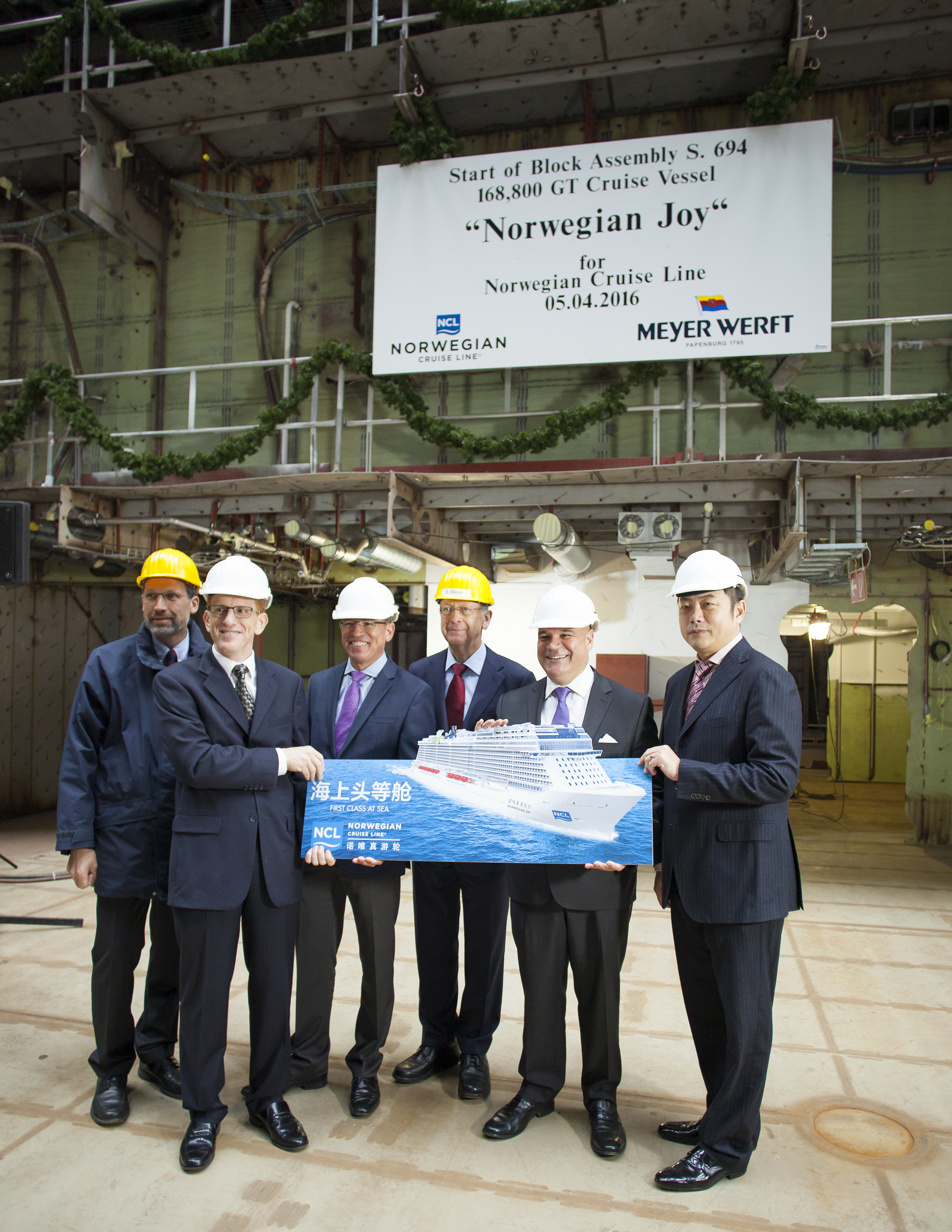 “Today we have placed the first of about 80 blocks in our building dock,” says Bernard Meyer, Managing Director of MEYER WERFT. “We are very proud to continue the good cooperation with our long-standing customer Norwegian Cruise by building the Norwegian Joy.”