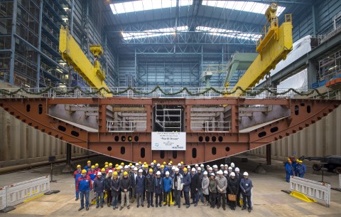 The management and also the project teams from Dream Cruises and the Meyer Werft attended the short ceremony held to mark the laying of the keel in building dock II. "It is our great pleasure to build these new ships for the new shipping company and to con-tinue our long-standing business relationship with the Genting Group, which began nearly 20 years ago with the construction of the SuperStar Leo", says CEO Bernard Meyer.
