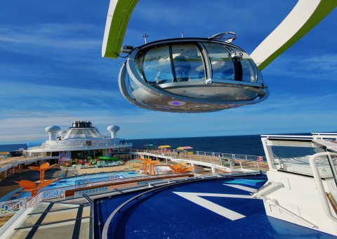 With the Quantum class, the engineers have once again brought a host of innovations to sea. Like its sister ships Quantum of the Seas, Anthem of the Seas, Ovation of the Seas and Spectrum of the Seas, MEYER WERFT's latest newbuilding features the glass, 90-metre-high observation gondola North Star, the surf simulator FlowRider as well as the skydiving simulator RipCord by iFly and the Sky Pad, a virtual reality, bungee trampoline experience located on the aft of the ship.