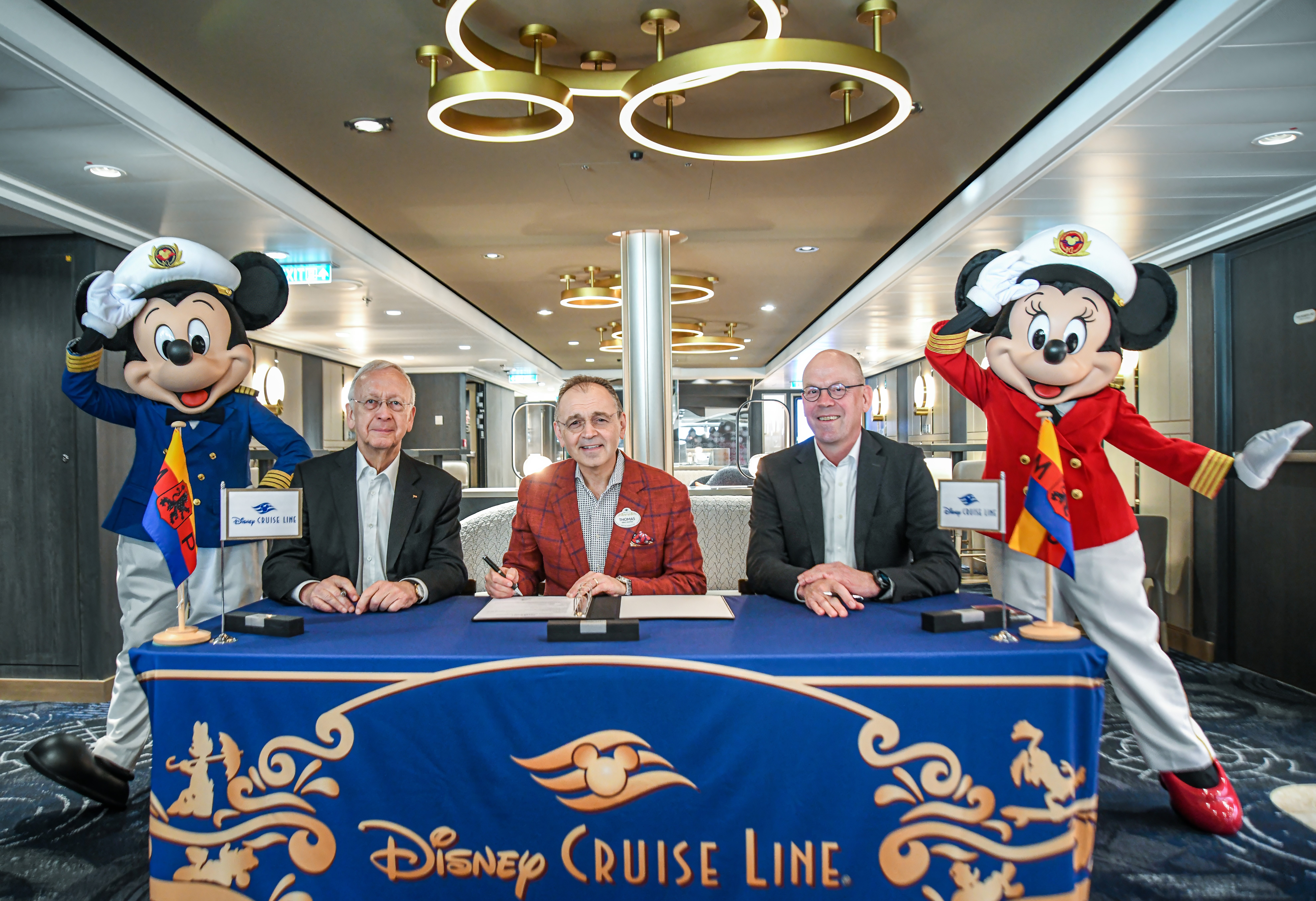 “We are very happy to hand over the Disney Treasure to Disney Cruise Line today. She is the newest milestone in our longstanding partnership and everyone at MEYER WERFT has put a lot of effort and passion into Disney Treasure”, says CEO Bernd Eikens. Together with Bernard Meyer and Thomas Mazloum, president of Disney Signature Experiences, Eikens signed the handover papers.