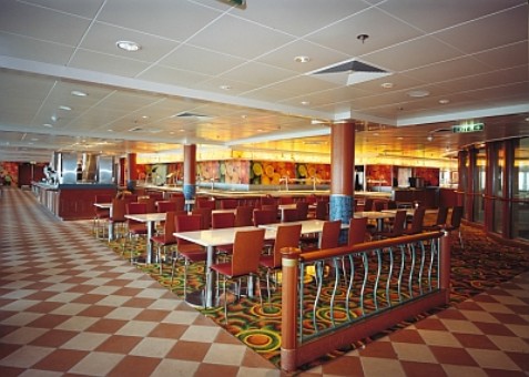 Market Café (Deck 12) In the self-service restaurant on deck 12 the passenger may choose from a large selection of foods and beverages. From the interior, which is well-tuned in colour, there is a fantastic view of the sea. To make sure that the little guests are not missed out either, there is a special "Kids Counter" which also offers different foods.