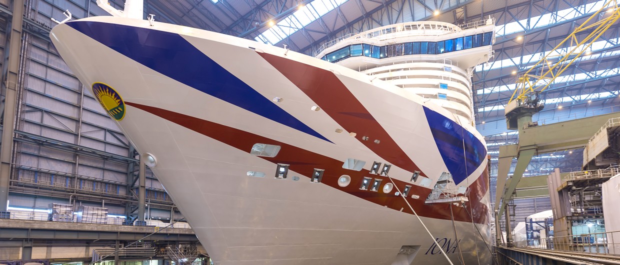 Iona will most likely be leaving the covered building dock II at the MEYER WERFT shipyard in the night from February 13 to February 14. The ship has a rating of 184,000 GRT and measures 344,5 m in length and 4 m in width, with capacity for 5,200 passengers.
