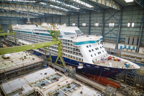 Caption: Spirit of Discovery in building dock I at MEYER WERFT.
