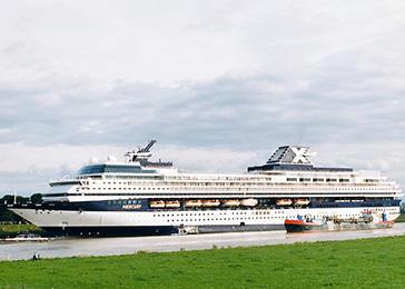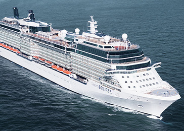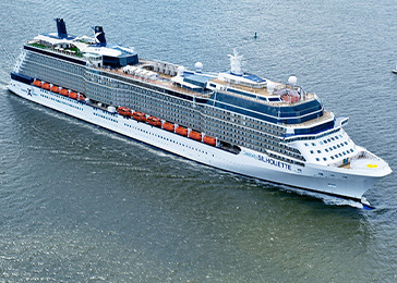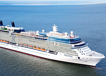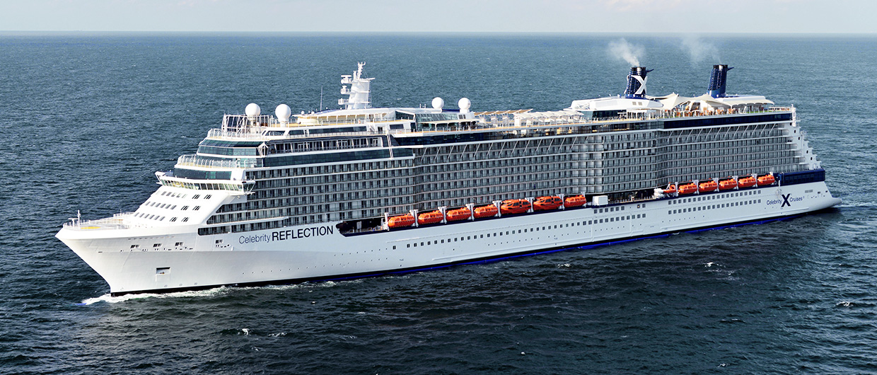 Celebrity Reflection is 319 metres long, 37 metres wide and has 1,523 passenger cabins. The large and elegant cruise ship features lots of angular surfaces, impressive glass façades and a steeply sloping stern. The superstructure is fitted with smaller funnels than normal and the balconies are slightly offset inwards. The propulsion machinery is built around two diesel engines and an innovative, fuel-efficient drive system.