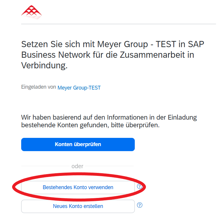 No, in this case you can link your existing SAP Ariba account with MEYER. You will receive an invitation from MEYER to use SAP Ariba and can link your account via the provided link. (click here to see the image).